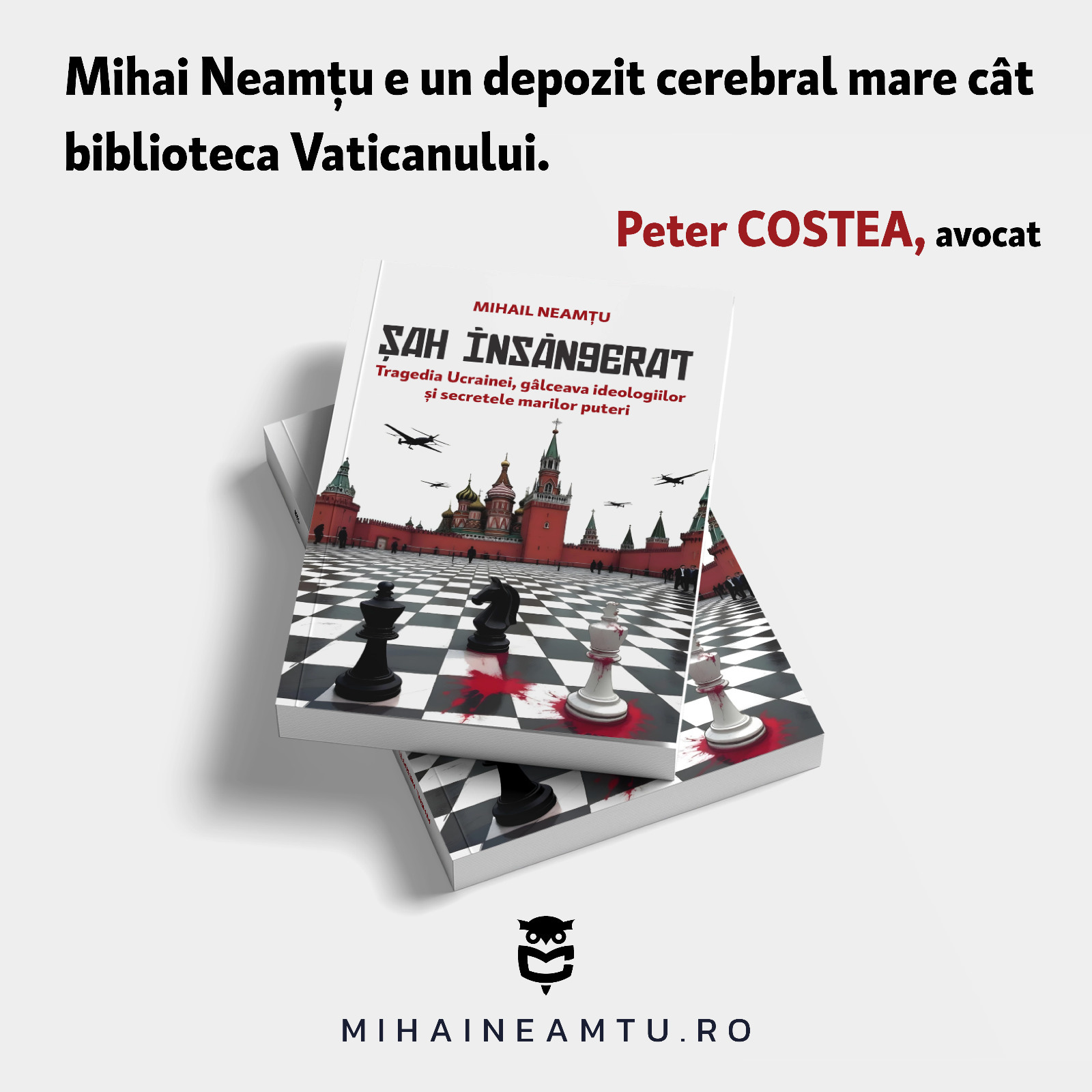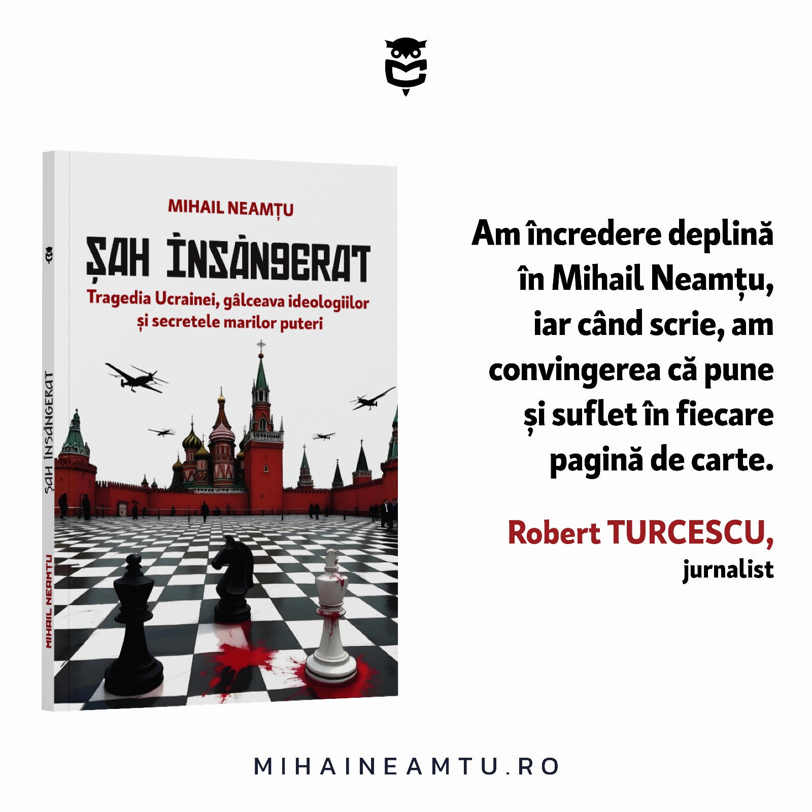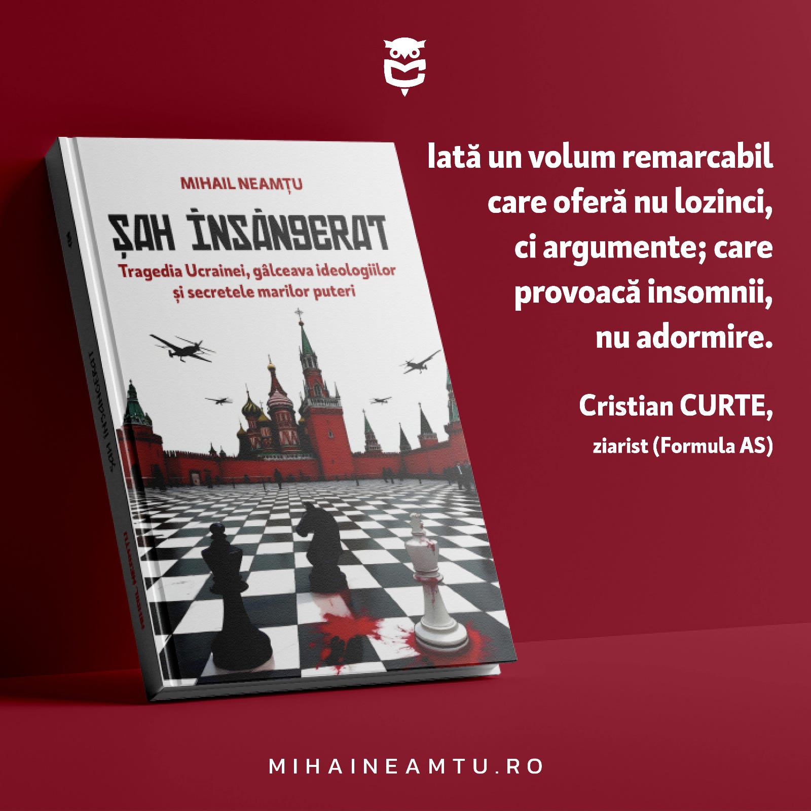 Din motive de provincialism cultural și conformism ideologic, societatea românească nu s-a bucurat, până acum, de comentarii asupra războiului din Ucraina într-o cheie a realismului geopolitic. Mihail Neamțu vine să umple acest gol, dublând analiza sferelor de influență NATO versus Rusia cu istoria ideologiilor dominante ale secolului XX: naționalism, liberalism, eurasianism. Pentru îndrăzneala de-a căuta rădăcinile intelectuale ale unei tragedii militare va primi porția de damnare binecunoscută. Într-o ţară în care pomenirea lui John Mearsheimer miroase a blasfemie, mă aştept ca volumul „Șah însângerat” să fie întâmpinat cu suspiciune sau ostilitate. Blindat cu argumente teoretice și date istorice, Mihail Neamțu refuză confortul indignării morale și ne invită la o reflecție zguduitoare: de ce au murit 1 milion de suflete fără ca diplomația să miște? Ce poate face România pentru a evita scenariul ucrainean? Iată un volum remarcabil care oferă nu lozinci, ci argumente; care provoacă insomnii, nu adormire.
